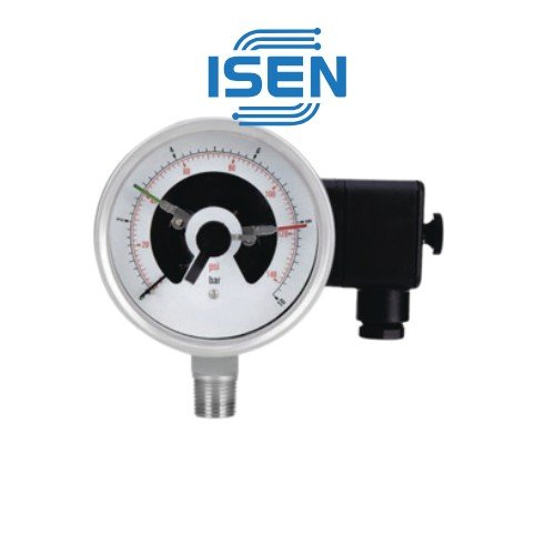 ISEN 电接点压力表经过精心设计,具有清晰度和耐用性。该仪表采用清晰易读的表盘,以 bar 为单位进行测量 ,可一目了然地读取压力。如 4 英寸型号所示,其量程可达 0-250 bar ,醒目的显示确保操作员能够快速确定系统状态 。 电接点压力表的与众不同之处在于其集成的电接点系统。这一关键特性使仪表不仅能够显示压力,还能在预设的压力点充当开关。此功能对于以下方面具有不可估量的价值: